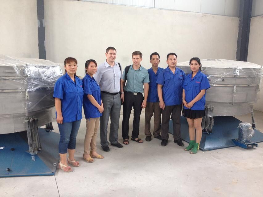 兩臺振動電機(jī)作同步相反運(yùn)動,物料受力被拋起,并向前作直線運(yùn)動。 一、影響物料在篩面上運(yùn)動軌跡的因素: 1、電機(jī)的安裝角度:角度越大物料在篩面上做拋物運(yùn)動軌跡的跨度值越大,所以 產(chǎn)量越大,相反精度越低。 2、電機(jī)的激振力:激振力的大小直接影響物料在篩面上做拋物運(yùn)動軌跡的拋物高度值。另,兩臺電機(jī)的激振力必須是相等的: 3、篩機(jī)的自身高度:可設(shè)計(jì)正、負(fù)角兩種方案。 二、篩網(wǎng)的安裝 1、單層篩網(wǎng):適合比較好篩、物料比重較輕和要求篩網(wǎng)目數(shù)不大的物料。 2、子母網(wǎng)(托網(wǎng)加篩分網(wǎng)):適合比較好篩、物料比重較重和要求篩網(wǎng)目數(shù)不大的物料。 3、單層帶彈球:適合不太好篩容易堵網(wǎng)需要彈球清網(wǎng)和物料比重較輕的物料。 4、子母網(wǎng)帶彈球(托網(wǎng)加篩分網(wǎng)加彈球):適合不太好篩容易堵網(wǎng)需要彈球清網(wǎng)和物料比較重的物料。 三、網(wǎng)架材質(zhì): 1、木質(zhì)網(wǎng)架:制造成本低,換網(wǎng)方便,篩網(wǎng)的損壞幾率較低,密封性相對略好 2、鋼質(zhì)網(wǎng)架:物料有特殊要求時,物料比重過高和顆粒較大的 四、適合篩分的物料和目數(shù): 1、石英砂:10目、20目、40目、80目、120目; 2、活性碳:6目、16目、24目、48目; 3、石粉:6目、16目、24目、48目; 4、耐火材料:10mm、8mm、5mm、1mm、40目、120目。