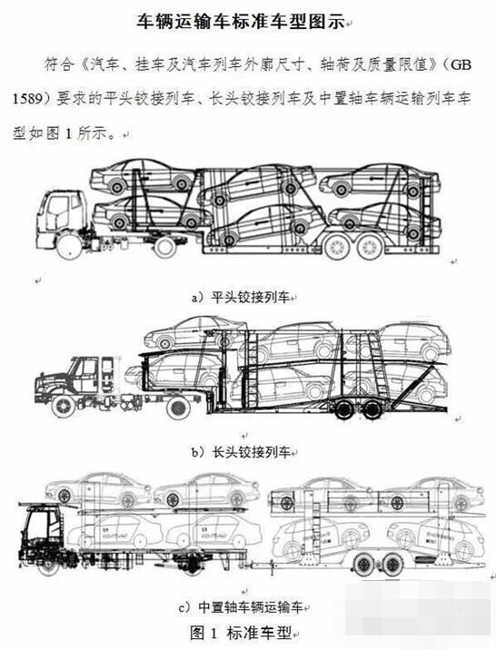 各地交通運輸主管部門要加強對符合國家標準要求的平頭鉸接列車、長頭鉸接列車、中置軸車輛運輸列車(車輛圖示見附件3)的宣傳,保障合規(guī)車輛運輸車順利通行。上述車輛在通行高速公路時,各地交通運輸執(zhí)法人員、收費人員不得以未在申報系統(tǒng)內(nèi)申報等理由拒絕其駛?cè)敫咚俟坊蜻M行處罰。對于中置軸車輛運輸車,裝載高度參照載運標準集裝箱的車輛執(zhí)行。