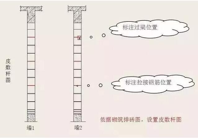 ( 2 )施工時在墻體轉(zhuǎn)角處立好皮數(shù)桿或利用混凝土墻柱做皮數(shù)桿,桿上標明塊層、灰縫、窗臺板、門窗洞口、過梁、圈梁、預(yù)制件等的高度及位置,并應(yīng)隨時檢查其準確性。