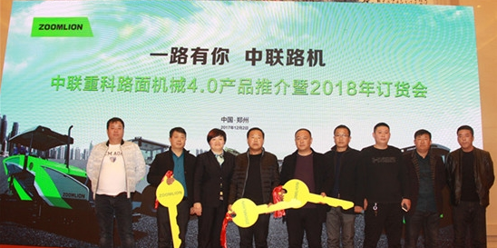 2017年12月2日,中聯(lián)重科在河南省黃河迎賓館舉行了主題為“一路有你 中聯(lián)路機”的路面機械4.0產(chǎn)品推介會暨2018年訂貨會。推介會上,中聯(lián)重科路面機械公司副總經(jīng)理周元珍、中聯(lián)重科路面機械公司營銷公司總經(jīng)理張曉東、中聯(lián)重科路面機械產(chǎn)品研究所所長龔敬等公司領導與中國建筑第七工程局集團有限公司商務總經(jīng)理魏新保、設備管理部經(jīng)理楊高偉、鄭州市公路局路通公司副總經(jīng)理馬國強、鄭州市瀝青站協(xié)會會長朱金安、河南連通路橋有限公司副總經(jīng)理袁偉、等當?shù)匦袠I(yè)資深人士,同河南省內(nèi)近兩百位客戶,共商路面機械產(chǎn)品升級及項目施工助建方案。
