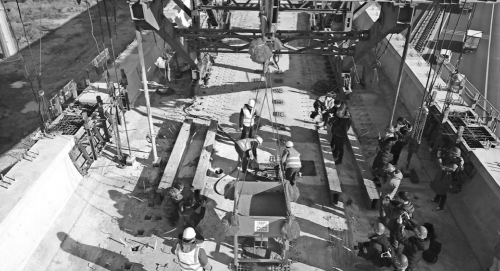“主要采用掛籃現(xiàn)澆混凝土的施工方法?!彼f,簡單來說就是整個施工作業(yè)面像一個籃子一樣,用架子掛起來。