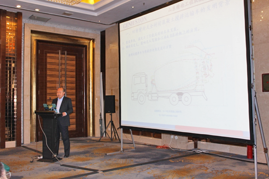 意大利普曼普(PMP)董事長Luigino POZZO先生作了《全球攪拌運輸車的發(fā)展趨勢》的主題報告,Luigino POZZO先生詳細闡述了歐洲攪拌車在以下四方面的技術發(fā)展趨勢。一是安全性(Safety),二是對環(huán)境的影響(Environmental impact),三是攪拌(混凝土)質量(Quality of mixing),四是操作員舒適性(Ergonomics/Operatorcomfort),并提出歐洲大攪拌運輸車(超過10立方)是意大利和北歐(荷蘭)市場的主流型號,并已證實可以提高混凝土運輸?shù)男剩怯迷敿毦唧w的對比數(shù)據(jù)闡述了這一結論。Luigino POZZO先生對國外攪拌運輸車的發(fā)展趨勢的闡述給這次研討會提供了寶貴的意見。
