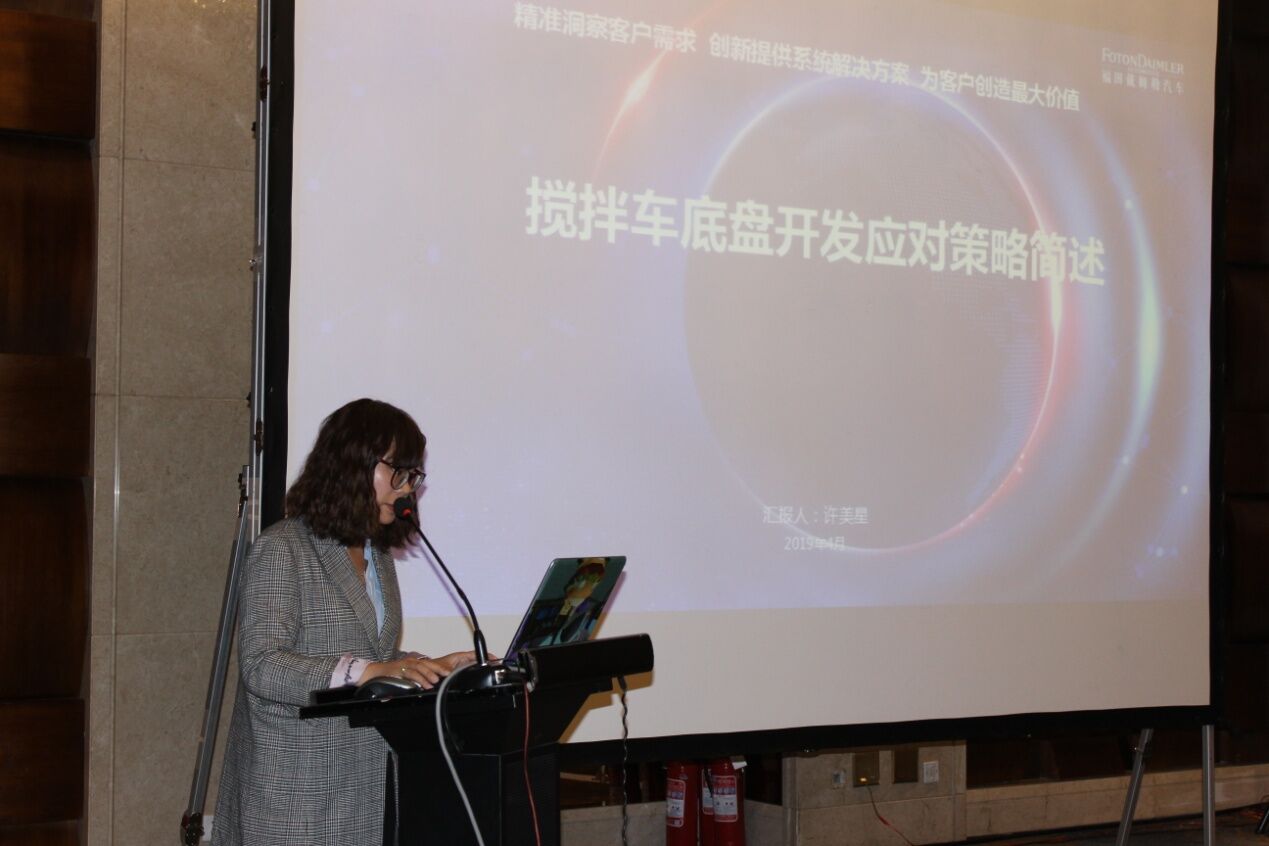 北汽福田汽車股份有限公司技術部部長許美星女士作了《適應攪拌車新法規(guī)之底盤設計》的主題報告,結合攪拌車的發(fā)展趨勢介紹了重卡發(fā)展的總體趨勢以及政策法規(guī)制定進程,有很多參考的價值和意義。同時許部長還介紹了認證體系中的主要應對項以及BFDA產品開發(fā)應對策略,讓與會者對于配套的底盤及政策有了更多了解。