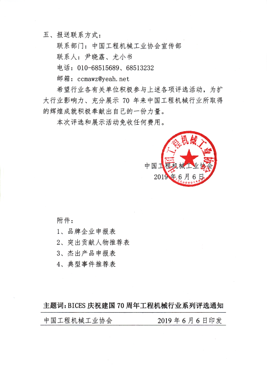 關于開展BICES慶祝建國70周年工程機械系列行業(yè)評選的通知
