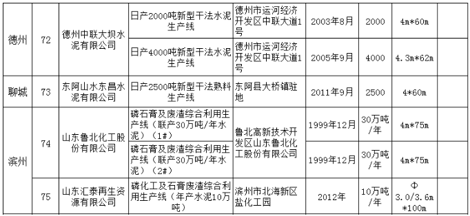 將截止2018年12月31日的山東省水泥熟料和平板玻璃生產(chǎn)線清單予以公示,共計75條水泥熟料生產(chǎn)線。