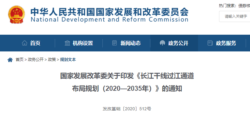 ??《長江干線過江通道布局規(guī)劃(2020—2035年)》(以下簡稱《規(guī)劃》)業(yè)經國務院批準,現(xiàn)印發(fā)給你們,請按照執(zhí)行,并就有關事項通知如下: