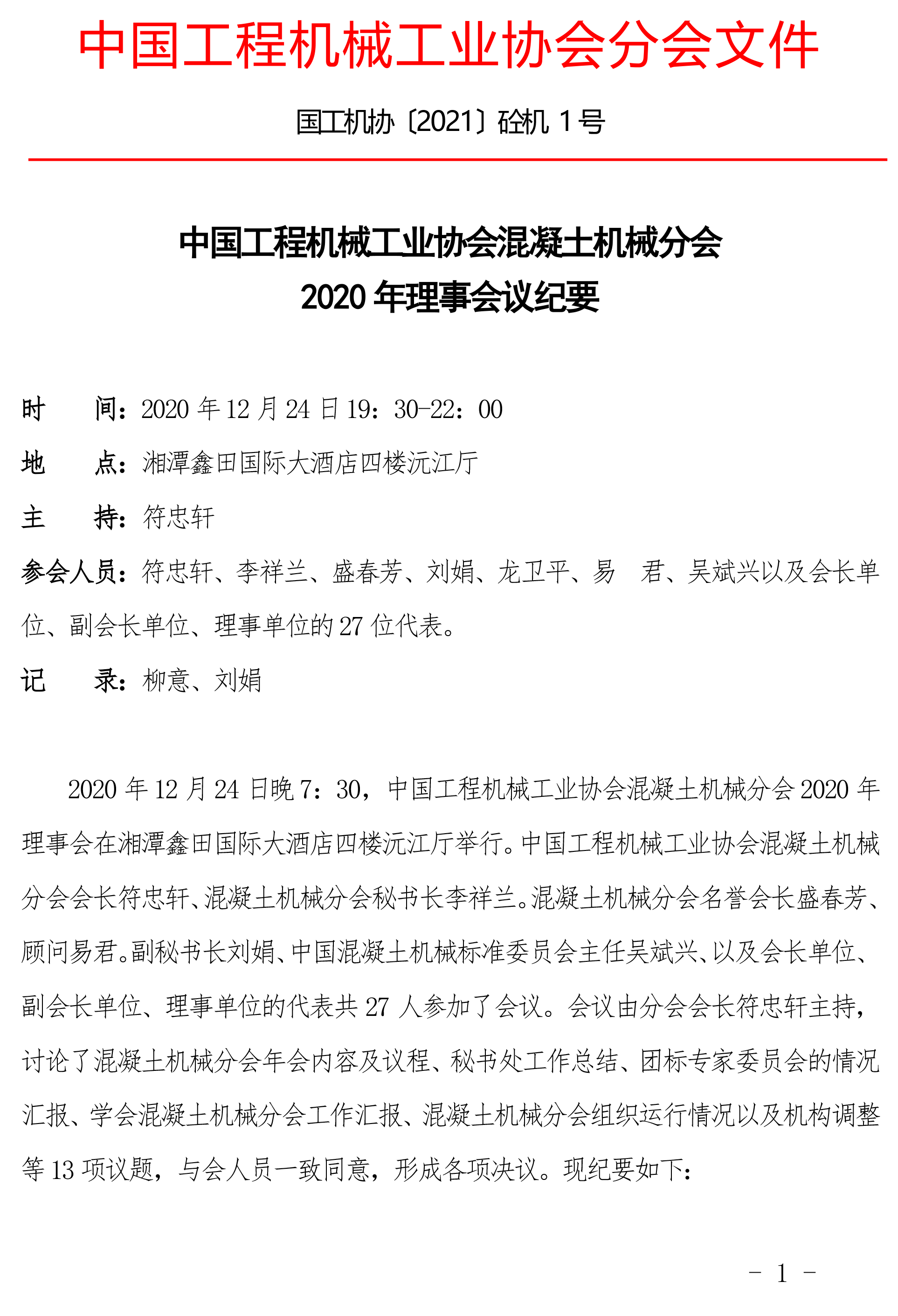 中國工程機械工業(yè)協(xié)會混凝土機械分會 2020 年理事會議紀(jì)要