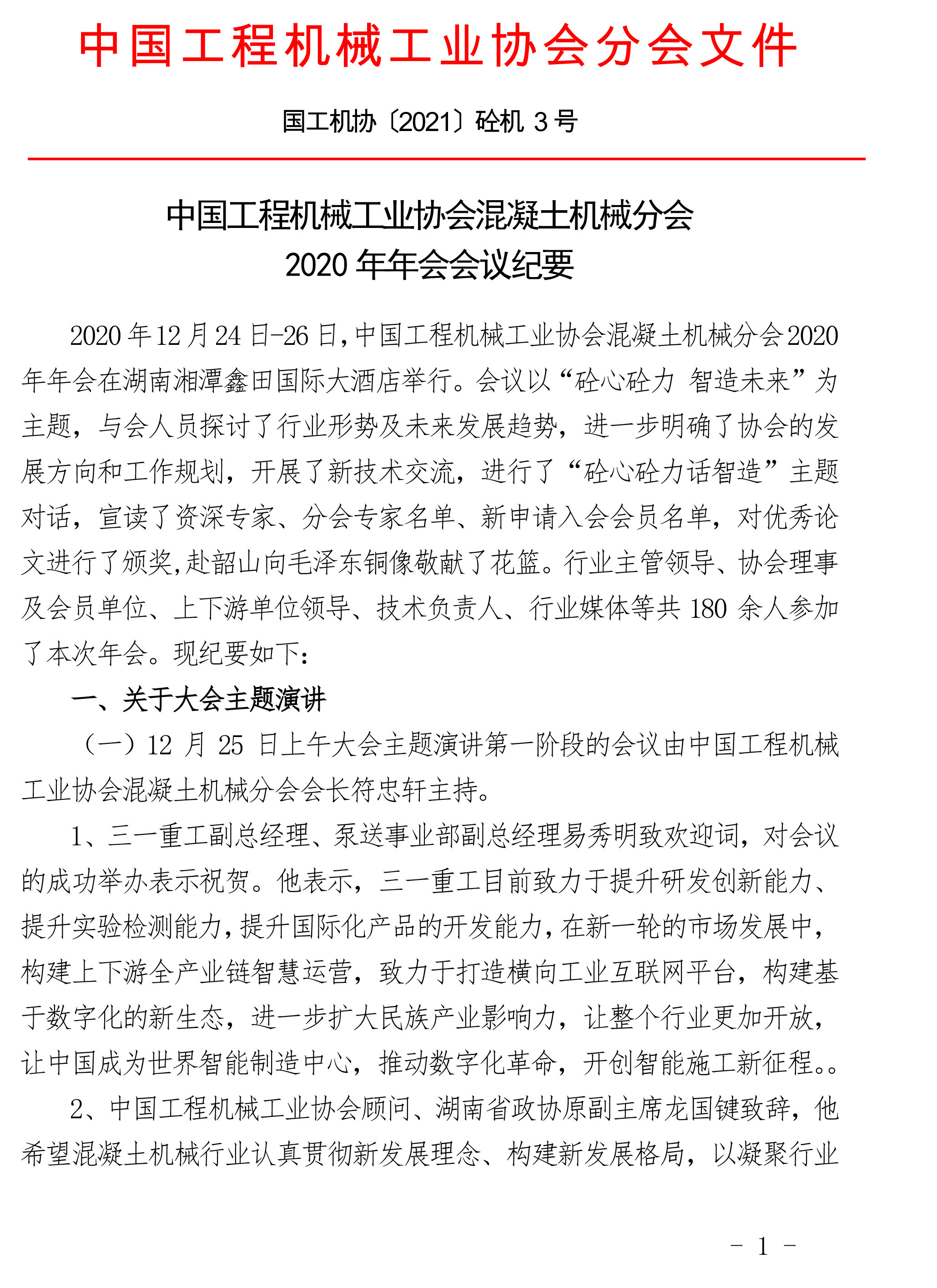 中國工程機械工業(yè)協會混凝土機械分會 2020年年會會議紀要