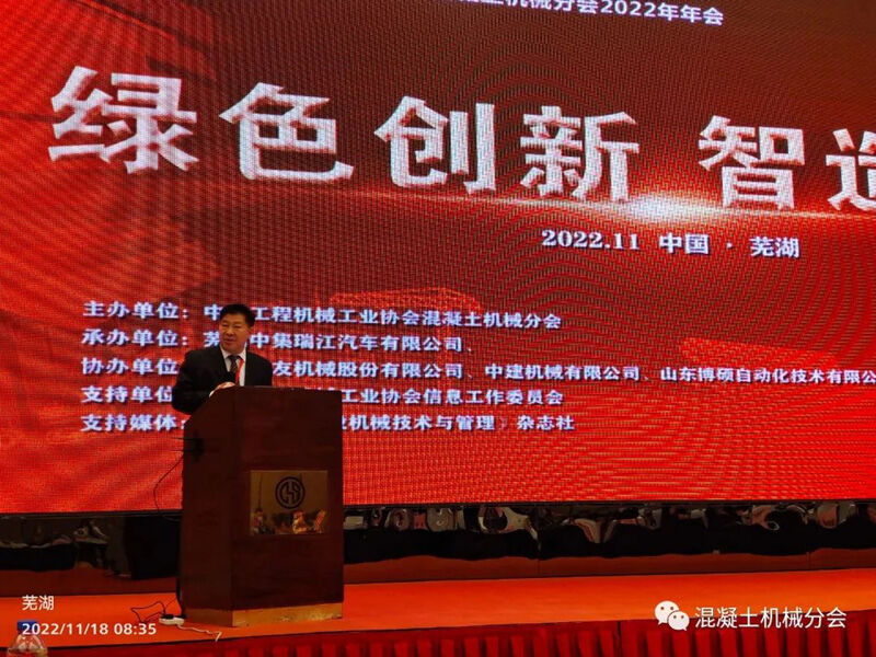 2022年11月17日至19日,以“綠色創(chuàng)新 智造未來”為主題的中國(guó)工程機(jī)械工業(yè)協(xié)會(huì)混凝土機(jī)械分會(huì)2022年年會(huì)在安徽蕪湖隆重舉行。
