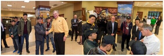 美國中部時間11月11日上午,Cat鋼鐵英雄爭霸賽盟主一行抵達卡特彼勒公司坐落于奧羅拉市的Cat裝載機工廠,展開為期兩天的卡特彼勒公司參觀訪問。隨后,盟主們輾轉(zhuǎn)皮奧里亞市,重溫卡特彼勒百年輝煌之路,訪問了生產(chǎn)推土機的卡特彼勒東皮奧里亞工廠和卡特彼勒的訪客中心,并在美國中部時間12日下午抵達愛德華茲演示與學(xué)習(xí)中心,通過遙控駕駛體驗了Cat D11T大型推土機。傍晚時分,卡特彼勒董事長兼首席執(zhí)行官道格拉斯?歐博赫曼與其他公司全球高層熱烈歡迎各位盟主的到來,并認真傾聽了他們對Cat產(chǎn)品設(shè)備的訴求。