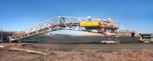 排土能力達(dá)到34000噸/小時(shí),臂長(zhǎng)超過(guò)120米。皮帶排土機(jī)為移動(dòng)式連續(xù)工作的排料設(shè)備,它們將來(lái)自可移動(dòng)梯段皮帶運(yùn)輸機(jī)的物料排卸在料堆上,借助皮帶轉(zhuǎn)載車和皮帶滑行轉(zhuǎn)載車將物料輸送到排土機(jī)。排土機(jī)有能力堆高低地、作為行駛路面的平盤,以便隨后用做新采區(qū)的卸料、堆高。除此之外,還可以使用一部皮帶排土機(jī)為可移動(dòng)梯段皮帶運(yùn)輸機(jī)堆起一個(gè)高平面。說(shuō)白了,它就是一個(gè)堆土的設(shè)備嘍~