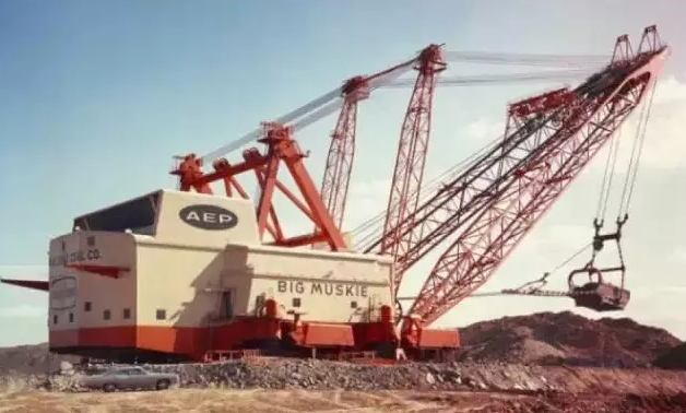 BIG MUSKIE官方編號(hào)為BE-4250W,是迄今最大的步進(jìn)式拉鏟,1967年B-E開始為美國(guó)的一個(gè)露天煤礦建造它,直至1969年5月建成并投入使用,當(dāng)時(shí)的制造費(fèi)用為2500萬(wàn)美元,專門用于土石剝離。它有22層樓高,用13800V高壓電驅(qū)動(dòng),僅空鏟斗的重量就有209噸;1991年Big Muskie因礦區(qū)采空而停止運(yùn)行,1999年爆破拆解,僅鏟斗留存下來(lái)。有卡車對(duì)比圖哦~