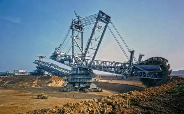 這是由德國(guó)克虜伯Krupp出品的世界上最大挖掘機(jī),96米高(相當(dāng)于30層樓),240米長(zhǎng),49米寬,14210噸重,其裝備20個(gè)8.6立方米鏟斗,總裝機(jī)容量2萬(wàn)千瓦,輪斗驅(qū)動(dòng)采用3臺(tái)1680千瓦電機(jī),總功率5040千瓦(6600馬力)。只需一天,這個(gè)大家伙就能挖出24萬(wàn)立方米土。曾有一次一輛80噸的推土機(jī)不幸被挖起并塞到了輪斗軸承里,可見它的力量之大。其移動(dòng)速度最大為600m/h,制造費(fèi)用達(dá)到1億美元。挖掘機(jī)技術(shù)哪家強(qiáng)?德國(guó)克虜伯敢稱王~