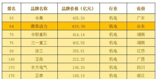而三一重工以402.58億品牌價(jià)值,排名76;