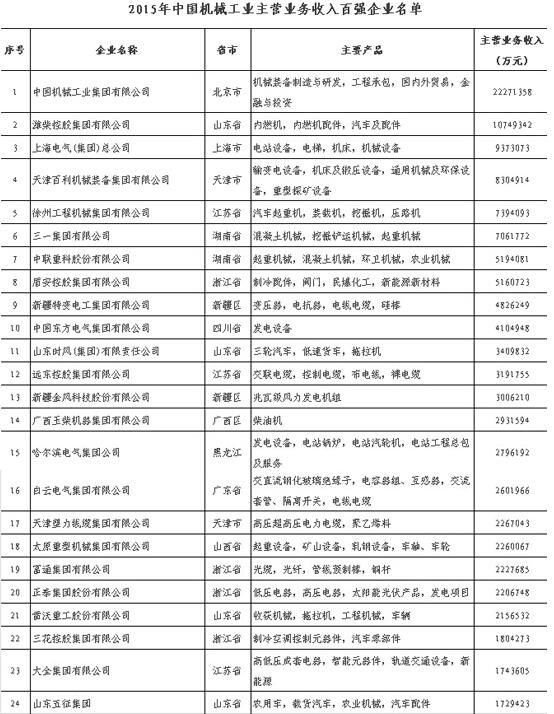 機(jī)械百強(qiáng)名單