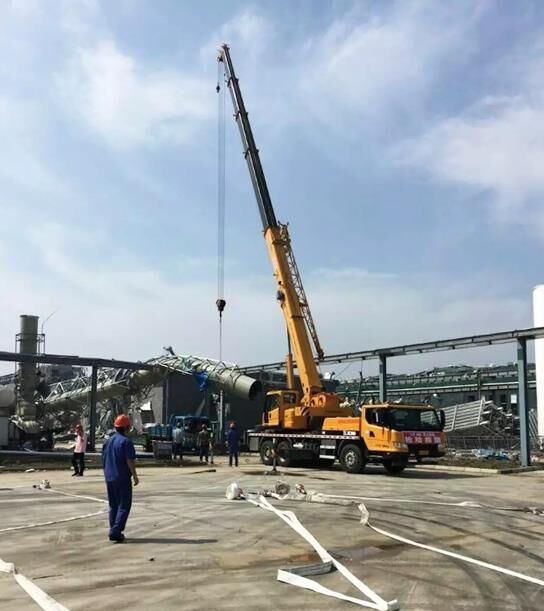 23日下午,由6名人員、4臺起重機、1臺挖掘機和兩輛服務車組成的救援小分隊趕到鹽城阜寧縣災區(qū),緊急與當?shù)鼐仍渚?、政府取得?lián)系,聽從統(tǒng)一指揮,全力投入現(xiàn)場搶險。