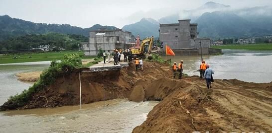 6月19日凌晨3時(shí)至20日8時(shí),湖北黃岡地區(qū)發(fā)生百年不遇特大暴雨,并引發(fā)山體滑坡,導(dǎo)致多處道路損毀,其中蘄春縣張榜鎮(zhèn)災(zāi)情最重。武警交通六支隊(duì)出動(dòng)兵力100余人,動(dòng)力舟橋、沖鋒舟和挖掘機(jī)等大型機(jī)車裝備近30臺(tái)(套),迅速展開救援工作。7月5日10時(shí),在蘄春縣下蘄線牛皮坳段,一處550米長(zhǎng)的堤岸上,11臺(tái)挖掘機(jī)一字排開,揮舞著大臂,將一鏟鏟砂石放下、夯實(shí),對(duì)大堤進(jìn)行加高。公路上,大型運(yùn)輸車來(lái)回穿梭。附近的三處取土點(diǎn),另外6臺(tái)挖掘機(jī)正在奮力勞作。從7月4日6時(shí)至7月6日18時(shí),17臺(tái)挖掘機(jī)不間斷勞作,550米長(zhǎng)、5米寬的堤岸,“長(zhǎng)高”了近2米。