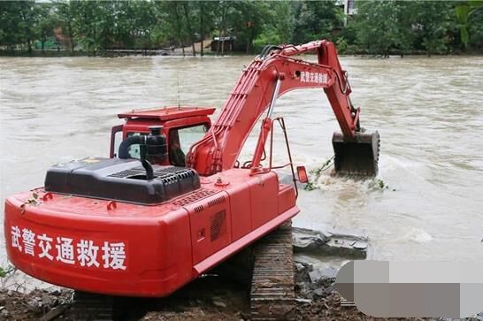 裝載機(jī)和挖掘機(jī)不停挖土并傾倒在河床上,山頂滑下來(lái)的巨石被填筑在路基邊坡,加固道路,保障安全,推土機(jī)在后方盡量推平直到可以供車輛行人行走,這是一幅抗洪救災(zāi)現(xiàn)場(chǎng)最常見的畫面,通力合作的除了武警官兵和救援人員們,就屬這些工程機(jī)械設(shè)備最為搶眼了。