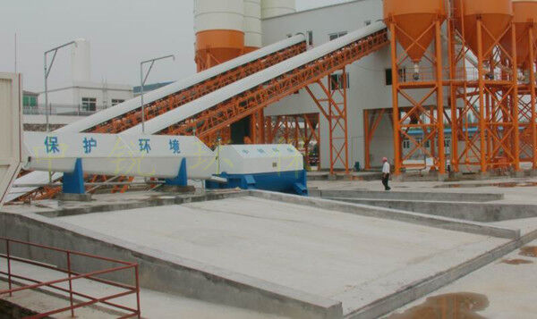 該系統(tǒng)主要由:攪拌車加水清洗裝置,溜槽輸送裝置,砂石漿水分離裝置,和泥漿水后處理裝置組成?;炷凛斔驮O(shè)備清洗后,將殘余混凝土排入溜槽中,在高壓水流沖擊下,經(jīng)溜槽進(jìn)入砂石分離機(jī),在不斷旋轉(zhuǎn)的分離機(jī)作用下,對(duì)混凝土進(jìn)行充分的清洗,同時(shí)將砂、石進(jìn)行分離,分離后的砂、石在導(dǎo)料葉片的作用下背向流動(dòng),再通過(guò)提升式出料口排出分離機(jī),分別堆放。清洗后的漿水從分離機(jī)的底部排出進(jìn)入沉淀池逐級(jí)沉淀后循環(huán)使用或進(jìn)入攪拌池回收利用。進(jìn)入攪拌池(一般情況2個(gè)攪拌池)的漿水為了防止沉淀凝固,需通過(guò)攪拌器的作用,攪拌器的工作為間歇式。分離出水泥漿在連續(xù)的攪拌器作用下,再通過(guò)高壓污水泵輸送到攪拌樓中待生產(chǎn)計(jì)量再利用。整個(gè)控制系統(tǒng)設(shè)有手動(dòng)和自動(dòng)控制,方便控制設(shè)置,整個(gè)系統(tǒng)運(yùn)行可靠,故障率低,維護(hù)量少等特點(diǎn)。
