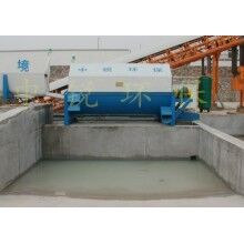 該系統(tǒng)主要由:攪拌車加水清洗裝置,溜槽輸送裝置,砂石漿水分離裝置,和泥漿水后處理裝置組成?;炷凛斔驮O(shè)備清洗后,將殘余混凝土排入溜槽中,在高壓水流沖擊下,經(jīng)溜槽進(jìn)入砂石分離機(jī),在不斷旋轉(zhuǎn)的分離機(jī)作用下,對(duì)混凝土進(jìn)行充分的清洗,同時(shí)將砂、石進(jìn)行分離,分離后的砂、石在導(dǎo)料葉片的作用下背向流動(dòng),再通過(guò)提升式出料口排出分離機(jī),分別堆放。清洗后的漿水從分離機(jī)的底部排出進(jìn)入沉淀池逐級(jí)沉淀后循環(huán)使用或進(jìn)入攪拌池回收利用。進(jìn)入攪拌池(一般情況2個(gè)攪拌池)的漿水為了防止沉淀凝固,需通過(guò)攪拌器的作用,攪拌器的工作為間歇式。分離出水泥漿在連續(xù)的攪拌器作用下,再通過(guò)高壓污水泵輸送到攪拌樓中待生產(chǎn)計(jì)量再利用。整個(gè)控制系統(tǒng)設(shè)有手動(dòng)和自動(dòng)控制,方便控制設(shè)置,整個(gè)系統(tǒng)運(yùn)行可靠,故障率低,維護(hù)量少等特點(diǎn)。