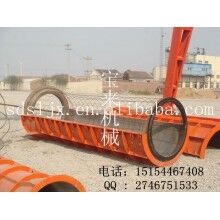 懸置在機架上的輥軸穿過管模,在電機驅(qū)動下,傳動軸帶動輥軸以規(guī)定速度旋轉(zhuǎn)。在輥軸與管模兩端擋圈摩擦力作用下,管模與輥軸作同方向旋轉(zhuǎn)。此時,由人工或機械投入的混凝土拌合物在旋轉(zhuǎn)離心力作用下鋪在管模內(nèi)壁,當混凝土拌合物料層厚度超過擋圈高度后,即開始受到輥軸與管模內(nèi)擠壓。隨著料層厚度的增加,輥軸對混凝土的壓力越大,并逐漸使混凝土拌合物達到預期的密實度。在輥壓成型過程中,混凝土拌合物除受到輥壓力作用外,還同時受到管模旋轉(zhuǎn)造成的離心力和管模由于投料均勻性影響而形成的自身振動力的作用。輥壓成形原理即是通過上述工藝過程和三種力的組合作用(其中主要是輥壓力),使混凝土拌合物密實而形成管模