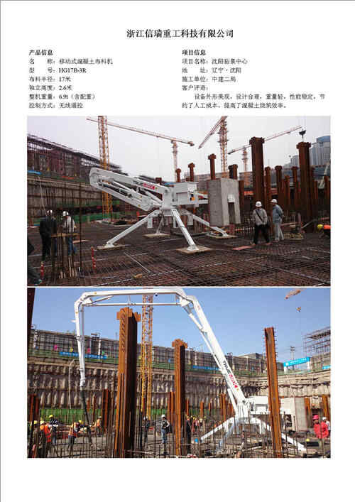 歸屬行業(yè):信瑞重工HG17B-3R移動式混凝土布料機