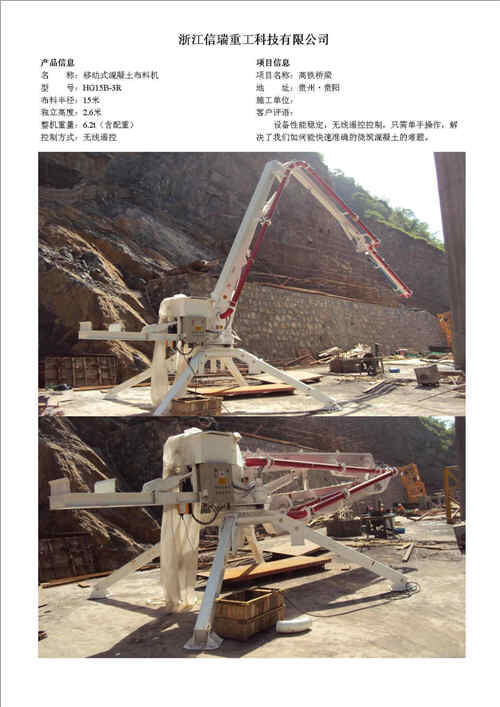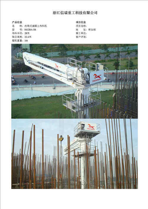 歸屬行業(yè):信瑞重工HG24A-3R樓面內(nèi)爬混凝土布料機