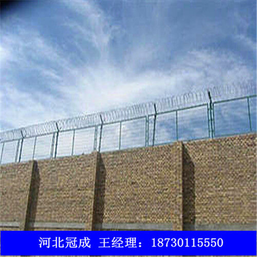 監(jiān)獄圍欄網(wǎng)可平地安裝,也可在圍墻上二次安裝,有效防止攀逃。直刺式刺網(wǎng)隔離帶,是用柱體和普通刺繩橫、縱、斜向交叉綁定成刺網(wǎng)隔離帶。主要用于特殊地帶、軍事基地圈護(hù)、溝壕圈護(hù),安裝簡(jiǎn)易,經(jīng)濟(jì)耐用?! ?