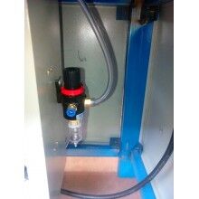 將膩?zhàn)臃郯b袋套在出料嘴上,撥動(dòng)彈簧開(kāi)關(guān),壓袋氣缸開(kāi)始工作并壓住袋口,控制器將包裝袋重量自動(dòng)去除,通過(guò)空壓機(jī)的氣流經(jīng)三分管分成三路,其中一路去往進(jìn)料口進(jìn)行破拱,保證下料暢通。葉輪高速轉(zhuǎn)動(dòng)迅速將物料撥出灌入袋中,隨袋中空氣一起溢出的粉塵經(jīng)排氣孔排出(對(duì)環(huán)保要求高的用戶(hù)也可連接吸塵器,由除塵器吸走)。待加料達(dá)到粗流設(shè)定值(L1)時(shí),氣缸自動(dòng)將橡膠軟管夾至1/2開(kāi)口,出料速度減慢,到總設(shè)定(L2)時(shí),氣缸將橡膠軟管完全夾死,出料停止,壓袋氣缸松開(kāi)袋口,灌裝結(jié)束。