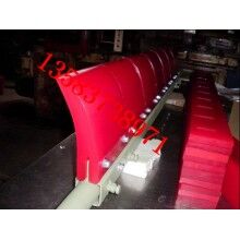 H型高分子聚氨酯清掃器 適用于清掃卸載滾筒處皮帶上粘附的物料,可分雙向刀頭和單向刀頭 屬于頭道清掃器。可自動(dòng)調(diào)節(jié)清掃器刮板與輸送機(jī)膠帶之間的接觸壓力,保證了刮板與運(yùn)行的膠帶受力在一定合適的范圍之內(nèi),使清料既干凈,又不損壞膠帶。