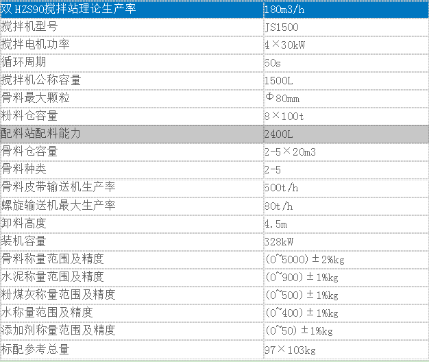 2HZS90商品大型混凝土攪拌站技術(shù)參數(shù)