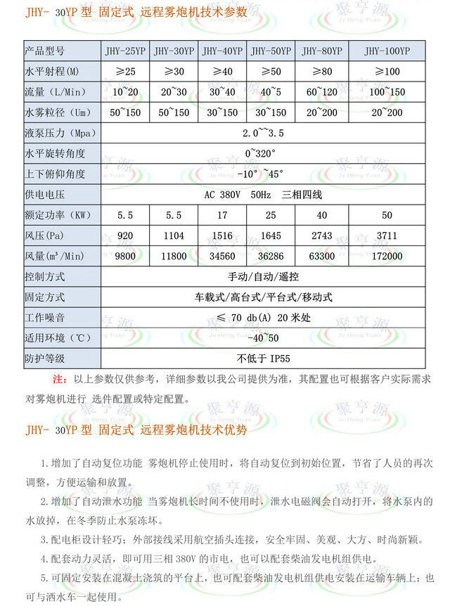 聚亨源JHY-□□YP系列遠(yuǎn)程霧炮機(jī)