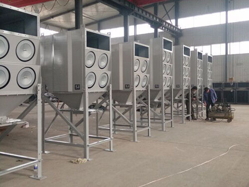 的工作原理:含塵氣流從入口進(jìn)入除塵器箱體,一般來說,氣體從濾筒的外側(cè)進(jìn)入,顆粒較大的粉塵由于重力作用,不經(jīng)過濾筒,直接沉降到灰斗內(nèi),或者受到慣性力的作用碰撞到箱體邊壁,沿著邊壁沉降下來。小顆粒粉塵隨氣流通過筒體,氣體中的粉塵顆粒被過濾在濾料表面,干凈的氣體從出口排除。粉塵在濾筒表面越積越多,阻力也越來越大,達(dá)到設(shè)定值或者設(shè)定時間,脈沖閥打開,壓縮氣體會吹向濾筒中心,同時誘導(dǎo)的空氣也會加強(qiáng)清灰效果,瞬時的高壓氣體將濾筒表面粉塵吹落,按照設(shè)置的順尋依次脈沖清灰,使系統(tǒng)恢復(fù)低阻力運行。