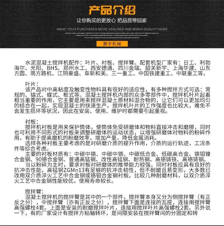 供應(yīng)阜新和美攪拌機(jī)配件高耐磨葉片刮刀襯板攪拌