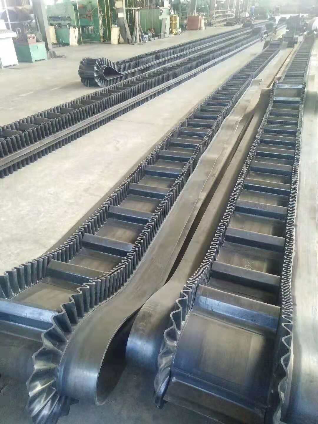 隔板:大傾角波狀擋邊輸送帶采用膠料與纖維復(fù)合材料混煉的工藝使得隔板挺性大,硬度高、增強(qiáng)了耐沖擊性,避免了其因受力較大而發(fā)生形變。