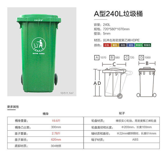 品名:240L塑料垃圾桶