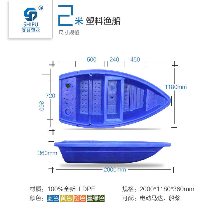 重慶賽普塑料捕魚船采用進(jìn)口韓國LLDPE材質(zhì),采用國外先進(jìn)的滾塑工藝整體加工制成。一次成型,無縫焊接。,成本低,穩(wěn)定性強(qiáng),抗撞擊,耐老化,無需維修。效果遠(yuǎn)超玻璃鋼漁船。使用年限長達(dá)30年以上,是新一代的漁船。欲購從速!13650528299(微信同號)