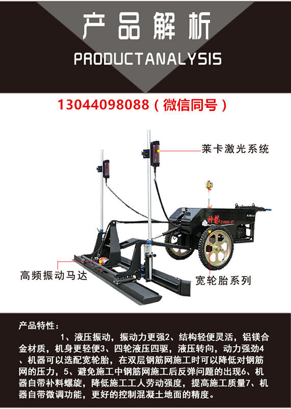 激光整平機適應(yīng)于鄉(xiāng)村道路混凝土地面、工業(yè)廠房和廠區(qū)地面,地下停車場地面、工業(yè)樓層地面等多元化混凝土場地施工,替代傳統(tǒng)振動尺、振動梁、振動滾等人員多大面積累積誤差大等施工缺陷;