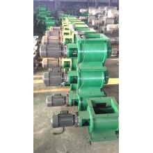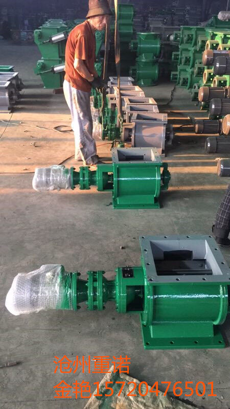 工作原理:星型卸料器工作時(shí),粉塵靠重力落入,充滿上面和側(cè)面的星形葉片空格。葉片轉(zhuǎn)子由電動(dòng)機(jī)通過減速機(jī)轉(zhuǎn)動(dòng)軸帶動(dòng),葉輪轉(zhuǎn)到下部粉塵靠自重卸下。這種卸塵器一般都安裝在除塵器灰斗下部,為保證連接處的嚴(yán)密不漏風(fēng),在回轉(zhuǎn)卸料器的上部應(yīng)經(jīng)常保持(儲(chǔ)存)一定高度的粉塵。因?yàn)槿~輪轉(zhuǎn)動(dòng)時(shí),卸完粉塵后葉輪轉(zhuǎn)上的那一面經(jīng)常是沒有粉塵的,所以容易使空氣漏入。為了保持一定高度的灰柱,而且不致卸空,*在灰斗內(nèi)裝設(shè)料位信號(hào)設(shè)施,并與卸塵閥的電動(dòng)機(jī)建立連鎖。