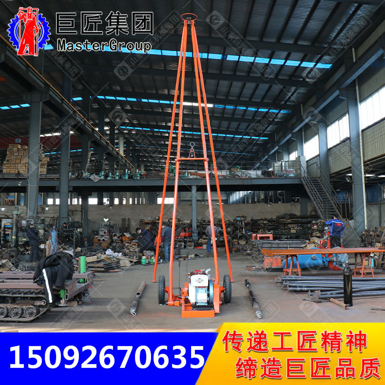 操作簡單而且機械化程度高,在正常情況下只需定員三人。 重量輕、結(jié)構(gòu)緊湊、解體性能好、搬運方便,在山區(qū)可拆搬,因配備有一對膠輪,故在城市和其它道路平坦地區(qū)可用汽車拖帶來實現(xiàn)施工孔位的移動。
