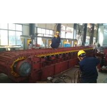 5、頭尾輪應(yīng)采用優(yōu)質(zhì)鑄鋼件并經(jīng)良好的熱處理,應(yīng)帶有張緊裝置。喂料倉與板喂機(jī)之間應(yīng)設(shè)有溜槽,板喂機(jī)帶支架和支腿。