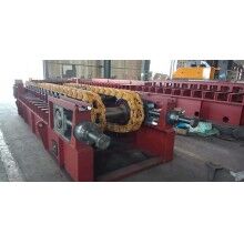 重型板式給料機(jī)是由電動(dòng)機(jī)轉(zhuǎn)動(dòng),再經(jīng)過(guò)聯(lián)軸器、減速器等帶動(dòng)主軸旋轉(zhuǎn),并通過(guò)主軸裝置上的鏈輪與鏈條嚙合帶動(dòng)鏈條上的鏈板運(yùn)動(dòng),達(dá)到運(yùn)送物料的目的,鏈板間隙可除去原料中的細(xì)粒泥土。在驅(qū)動(dòng)裝置的減速器上常裝有逆止器(安裝傾角大于15°時(shí)),以防止停機(jī)時(shí)發(fā)生倒轉(zhuǎn),并可通過(guò)變頻裝置調(diào)節(jié)給料速度。重型板式給料機(jī)是礦石輸送系統(tǒng)的重要設(shè)備,常用在原料倉(cāng)底,可連續(xù)、均勻的向初級(jí)破碎機(jī)給料,能在露天、潮濕等惡劣環(huán)境下可靠地工作,該機(jī)已在大型選礦廠破碎車間及水泥企業(yè)等廣泛使用。