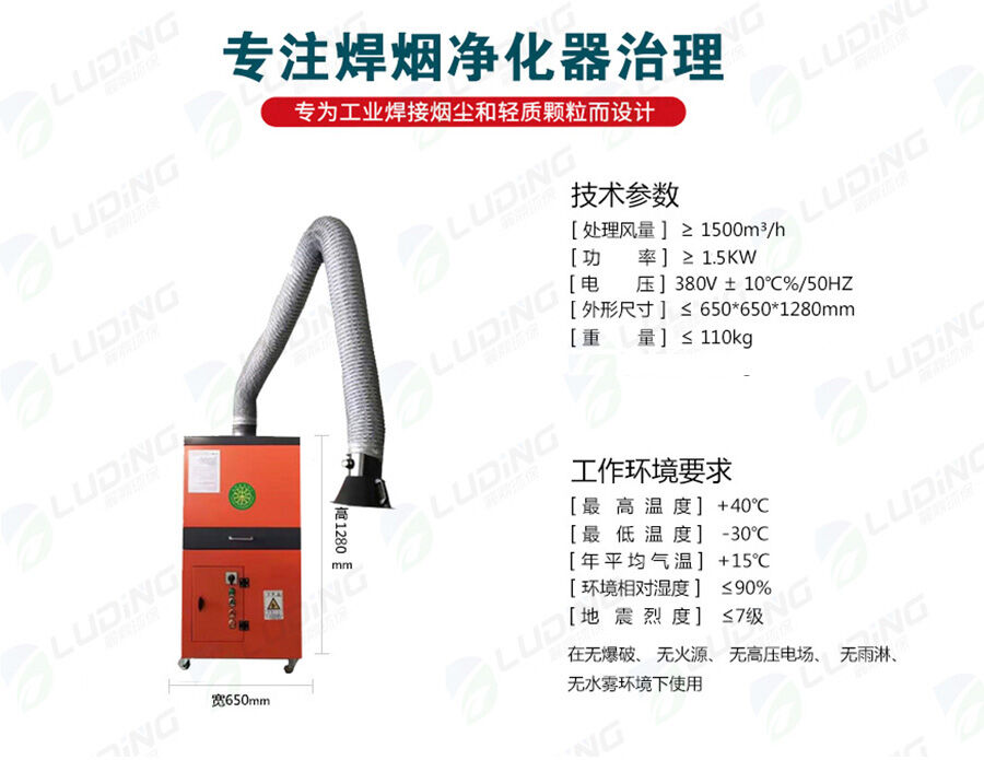 焊接煙塵又稱為電焊煙霧,是指焊接操作中經(jīng)常會(huì)產(chǎn)生一些有毒的物質(zhì)。如:乙醛、松香酸、異氰酸鹽、氮氧化物、硫化物、碳?xì)浠衔锏?。焊接煙塵是一種十分復(fù)雜的物質(zhì),lans已在煙塵中發(fā)現(xiàn)的元素多達(dá)20種以上,其中含量多的是Fe、CaNa等,其次是Si、AlMn、Ti、Cu等。焊接煙塵中的主要有害物質(zhì)為Fe2O3、SiO2、MaoHF等,其中含量多的為Fe2O3,一般占煙塵總量的35.56 ,其次是SiO2,其含量占1020 ,Mao520 左右。