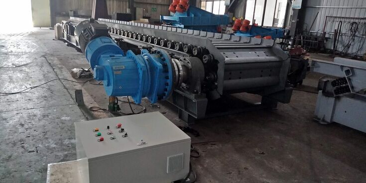 張緊裝置既是鏈板組件的張緊組件,又是改向軸組件的支承組件。它主要由座架及滑動(dòng)支承座組成,后部設(shè)能帶動(dòng)滑動(dòng)支承座前后移動(dòng)的調(diào)節(jié)桿,可對滑動(dòng)支承座前后調(diào)節(jié),以保持鏈軌合適的張緊度。