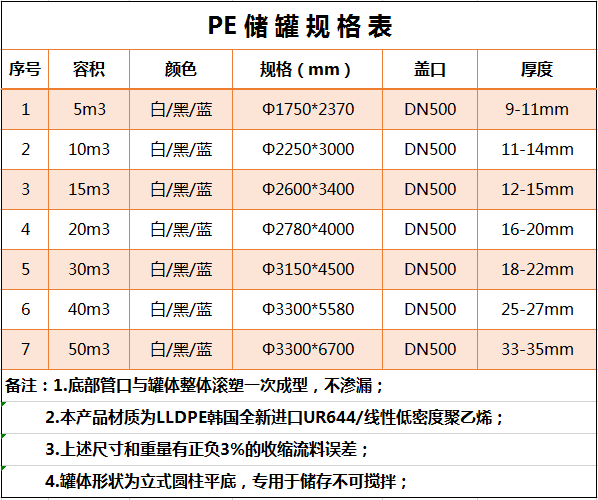 久佳塑料儲(chǔ)罐參數(shù):