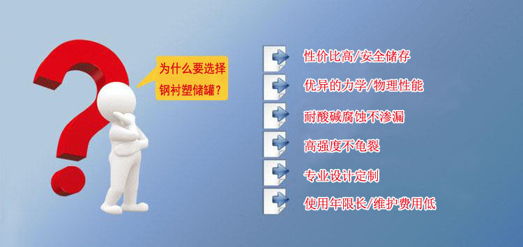 鋼襯塑儲(chǔ)罐由于其獨(dú)特的滾塑工藝、產(chǎn)品整體結(jié)構(gòu)和材料優(yōu)異性能,具有整體性好、強(qiáng)度高、無(wú)焊縫、不滲漏、抗沖擊、韌性好、重量輕、壽命長(zhǎng)、耐酸堿、耐有機(jī)溶媒、符合衛(wèi)生標(biāo)準(zhǔn)、價(jià)格低廉、規(guī)格品種多等特點(diǎn)。尤其耐腐蝕、長(zhǎng)壽命和大規(guī)格品種有非常大的優(yōu)勢(shì),是貯存和運(yùn)輸各類化工液體半固體的理想產(chǎn)品。其性能大大超過(guò)了傳統(tǒng)的玻璃鋼、陶瓷、橡膠、焊接塑料等材料制作的防腐儲(chǔ)罐。