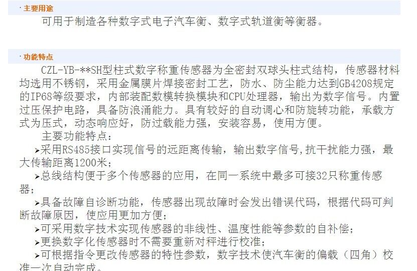 歸屬行業(yè):CZL-YB-**S-SH型傳感器
