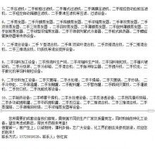 主要包括二手離心機(jī),臥螺離心機(jī),二手碟式離心機(jī),二手臥式螺旋沉降離心機(jī),二手反應(yīng)釜,二手不銹鋼反應(yīng)釜,二手搪瓷反應(yīng)釜,二手搪玻璃反應(yīng)釜,二手壓濾機(jī),二手板框壓濾機(jī),二手箱式壓濾機(jī),二手過濾機(jī),二手干燥機(jī),二手管束干燥機(jī),二手流化床干燥機(jī),氣流干燥機(jī),管束干燥機(jī),滾筒干燥機(jī),二手閃蒸干燥機(jī),二氣流噴霧干燥機(jī),壓力噴霧干燥機(jī),離心噴霧干燥機(jī),并流噴霧干燥機(jī),冷凍干燥機(jī),真空干燥機(jī),雙錐回轉(zhuǎn)真空干燥機(jī),二手蒸餾塔,二手酒精塔,二手振動(dòng)篩,流化床振動(dòng)篩,蒸餾釜,二手貯罐,不銹鋼儲(chǔ)罐,玻璃鋼儲(chǔ)罐,臥式儲(chǔ)罐,防腐儲(chǔ)罐,液氨儲(chǔ)罐,二手蒸發(fā)器,薄膜蒸發(fā)器,雙效蒸發(fā)器,三效蒸發(fā)器,二手高頻振動(dòng)篩,二手振動(dòng)篩,二手導(dǎo)熱油爐,二手蒸汽鍋爐,二手米糠油機(jī)械,二手胚芽油機(jī)械,二手榨骨機(jī)設(shè)備,二手蒸脫機(jī),二手蒸炒鍋,二手軟化滾筒、軋胚機(jī)、烘干機(jī)、剝殼機(jī)、振動(dòng)流化床干燥機(jī)、圓篩、振動(dòng)篩、平篩、膨化機(jī)及進(jìn)口膨化機(jī)、板框過濾機(jī)、振動(dòng)排渣葉片過濾機(jī)、冬化過濾機(jī)、離心機(jī)、阿法拉發(fā)碟式分離機(jī)、脫皂機(jī)、冷凝器、換熱器、水化罐、精煉罐、脫臭罐、脫色罐、立絞籠、平絞籠、提升機(jī)等,進(jìn)出口色拉油設(shè)備、生化油設(shè)備、氫化油設(shè)備、生物柴油設(shè)備、設(shè)備及各種零配件等。