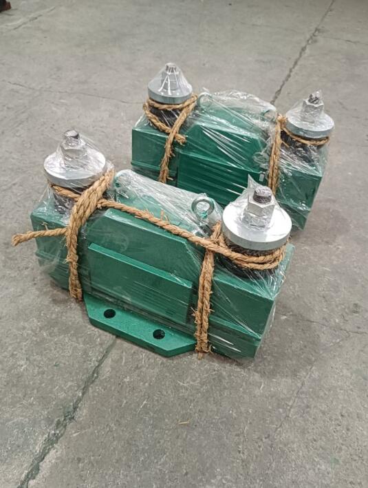 ⑼ 斜溜槽(見(jiàn)圖12):對(duì)于厚度小于3-3.5毫米的料槽,若在中心線靠下一點(diǎn)的部位安裝,便會(huì)在料槽下端產(chǎn)生強(qiáng)烈的振動(dòng)。用于圓筒形料槽時(shí),可先把振動(dòng)器裝在平板上,然后用U型螺栓固定在管子上。安裝單臺(tái)振動(dòng)器時(shí),一般應(yīng)裝在溜槽下端40%的位置上。安裝多臺(tái)時(shí),應(yīng)***同步運(yùn)行,*下部的一臺(tái)應(yīng)裝在距離溜槽端部45-60厘米處。