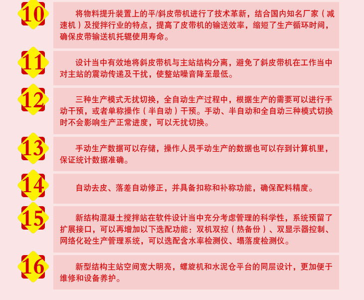 7、模塊快速組合式混凝土攪拌站模塊化設(shè)計有效的降低了生產(chǎn)過程中的噪音和灰塵,是一套環(huán)保的設(shè)備。